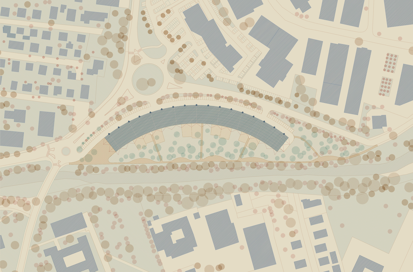 Set within a landscape marked by fragmentation and diverse productive and tertiary functions, the project seeks to play a unifying role, offering a large-scale intervention that links and serves the very different environments. The proposal for a new multifunctional building—designed for tertiary, commercial, and office use—is grounded in a systemic reimagining of the area: it in fact rises as a connection between the industrial district and the city.
